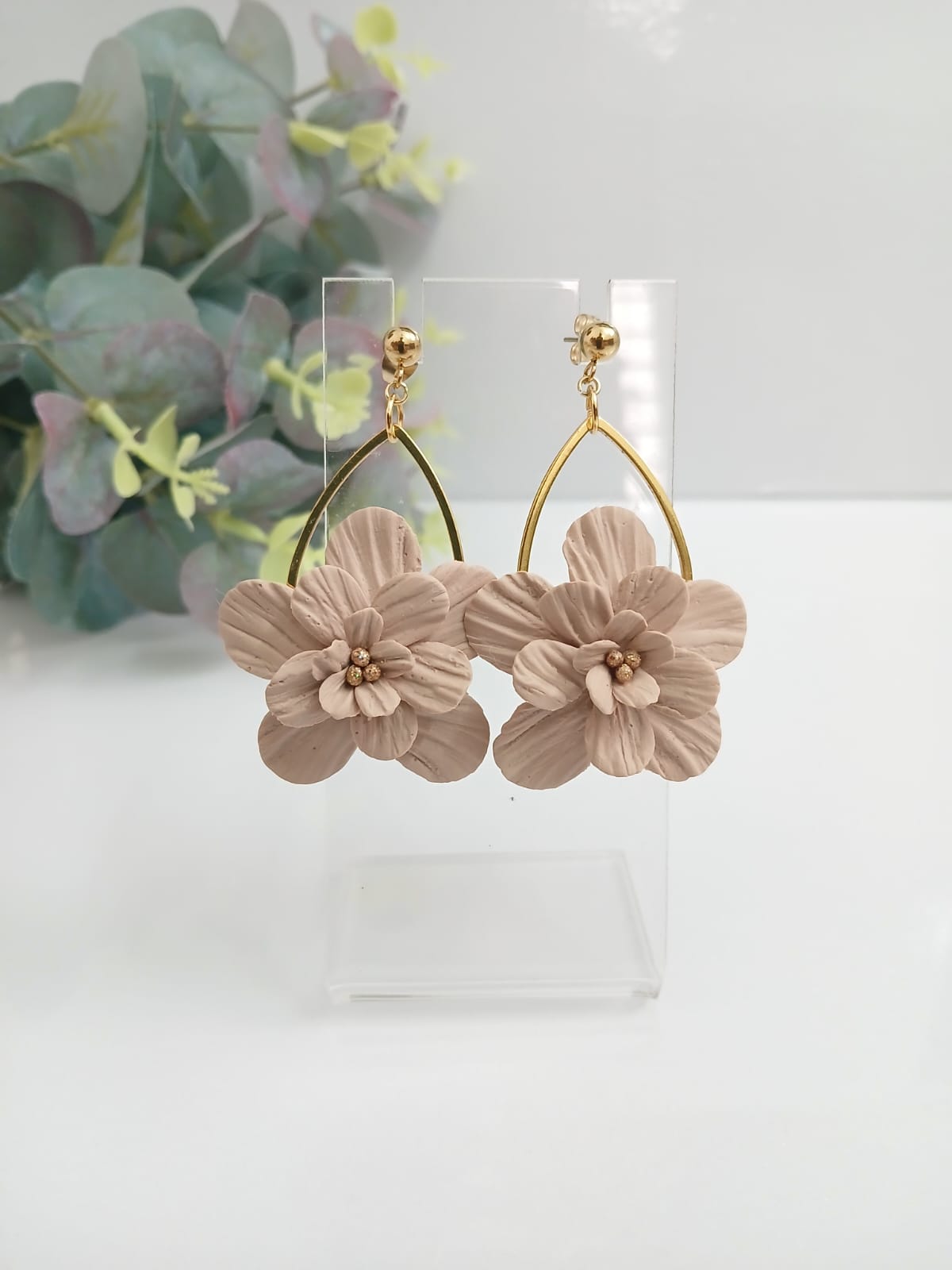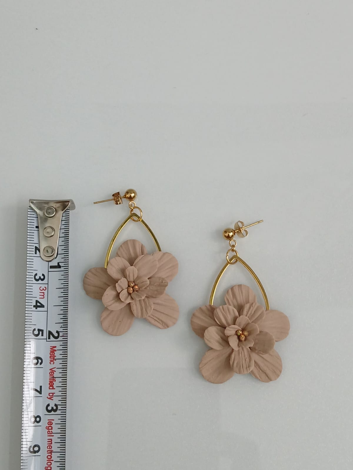 Be the first to review “Handmade Beige Flower Earrings, Gold Hoop, Polymer Clay Jewelry”