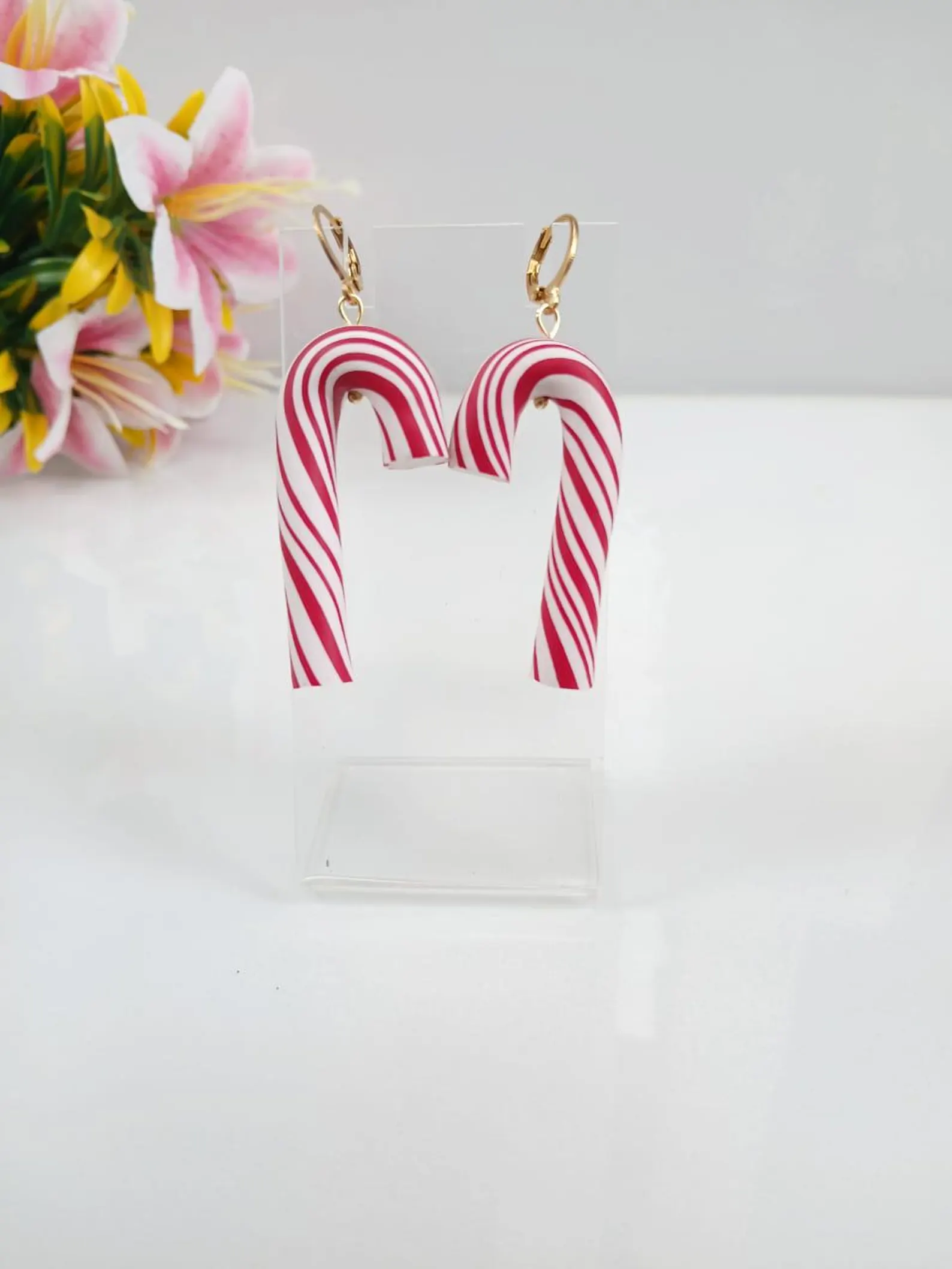 Handmade Candy Cane Earrings | Polymer Clay Christmas Jewelry