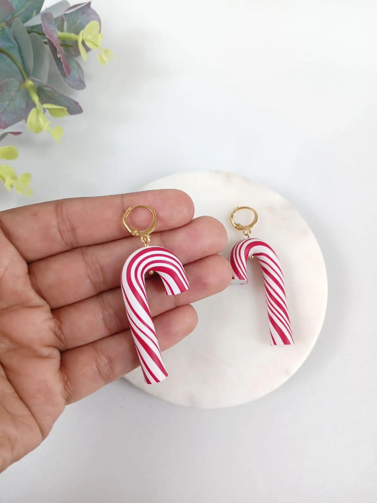 Bright, fun, and beautifully handcrafted—these candy cane earrings are a must-have for your festive jewellery collection!