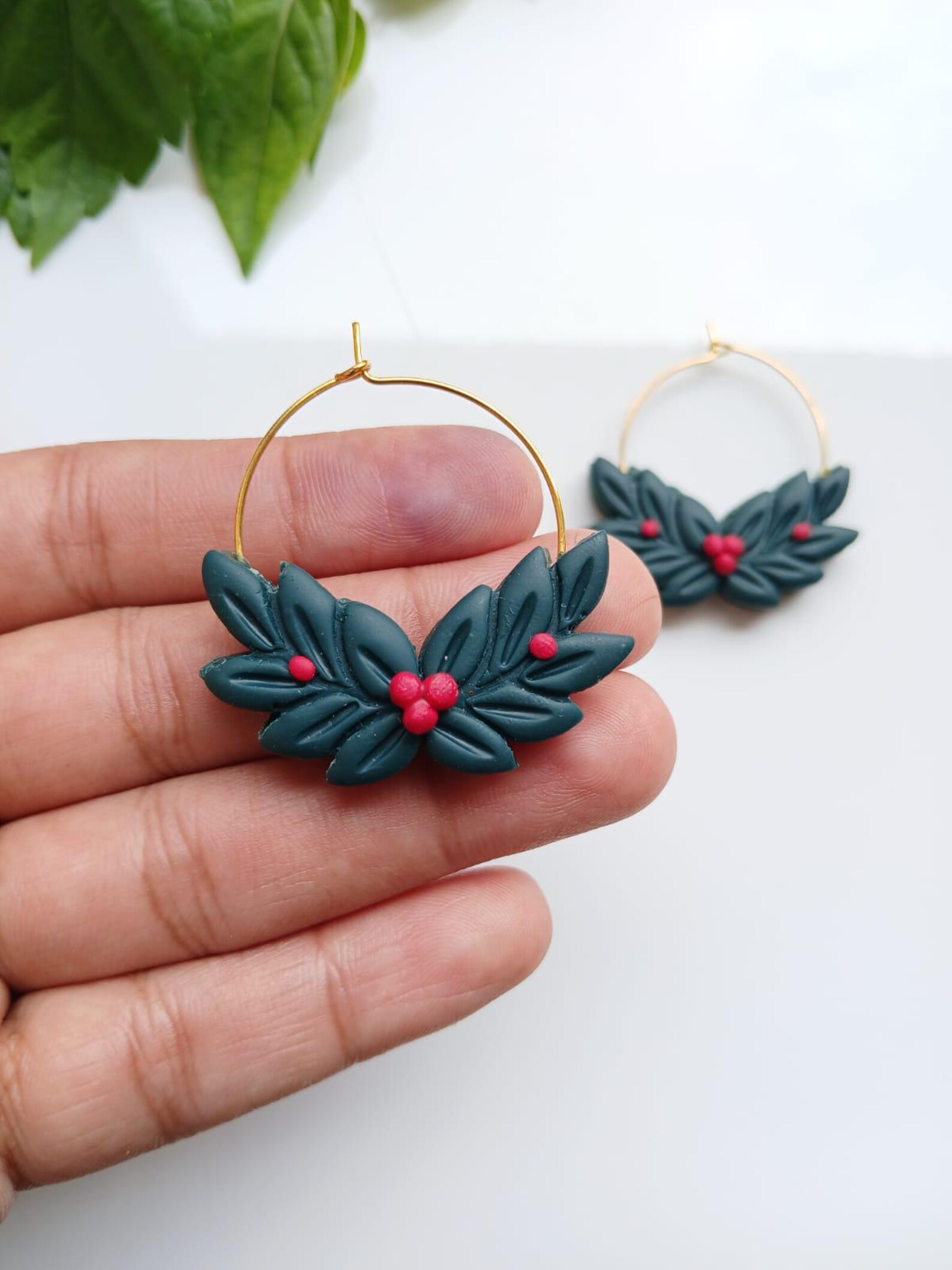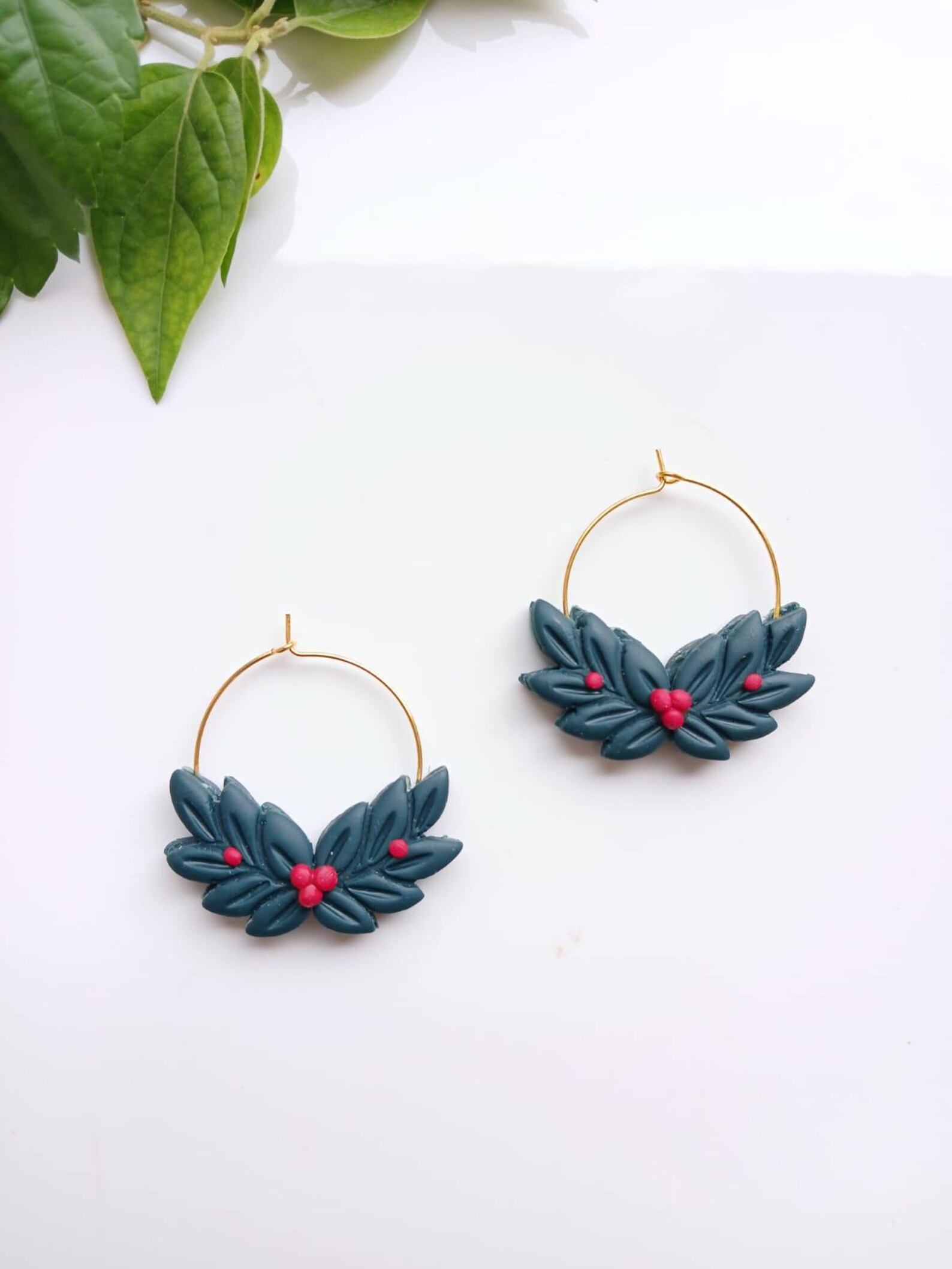 Be the first to review “Handmade Holly Berry Christmas Wreath Hoop Earrings l Holly Leaf Hoop Earrings | Polymer Clay Christmas Earrings”